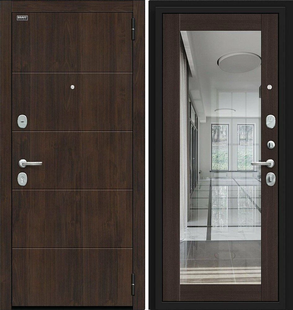 Надежная входная Дверь Браво Флэт Kale Almon/Wenge Veralinga премиум класса по цене 41 631 руб. Большая толщина стали защитит от проникновения в ваш дом, квартиру или коттедж. Используется очень качественная фурнитура: замки, цилиндры, ручки, защелки. Покрытие и отделка двери изготовлено под внимательным контролем производителя. Дверь имеет долгий срок службы и гарантию.
