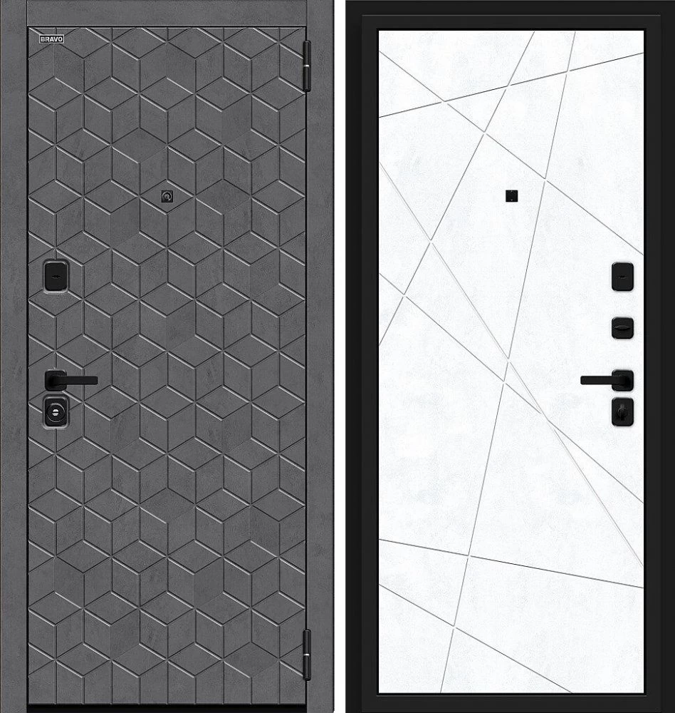 Надежная входная Дверь Браво Кьюб (RBE) Slate Art/Snow Art премиум класса по цене 38 541 руб. Большая толщина стали защитит от проникновения в ваш дом, квартиру или коттедж. Используется очень качественная фурнитура: замки, цилиндры, ручки, защелки. Покрытие и отделка двери изготовлено под внимательным контролем производителя. Дверь имеет долгий срок службы и гарантию.
