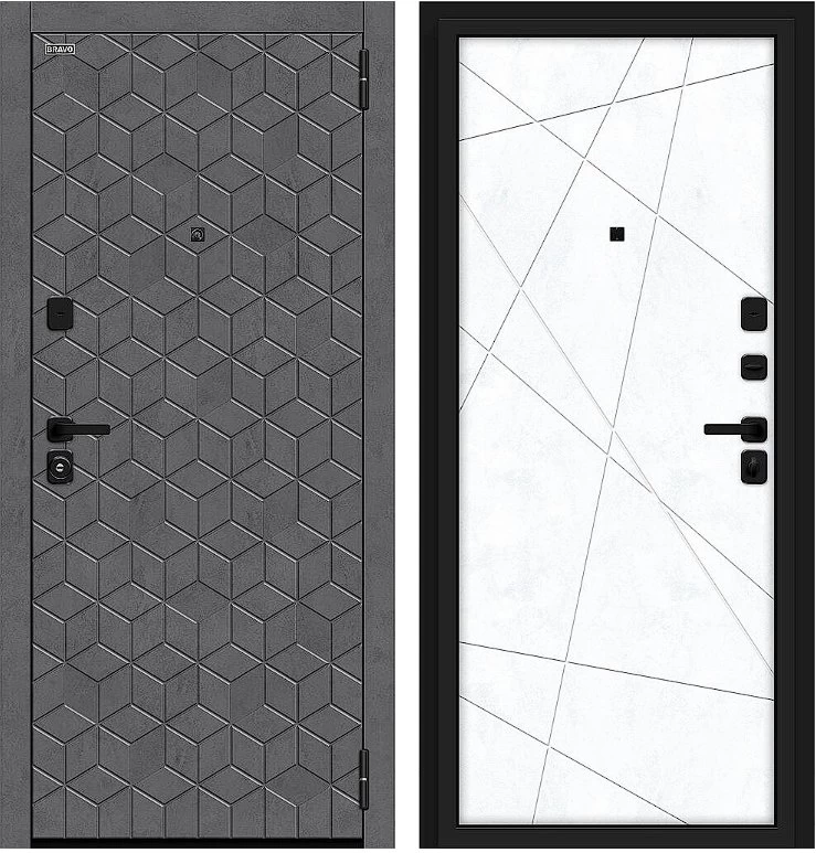 Надежная входная Дверь Браво Кьюб/SBlack Slate Art/Snow Art премиум класса по цене 39 181 руб. Большая толщина стали защитит от проникновения в ваш дом, квартиру или коттедж. Используется очень качественная фурнитура: замки, цилиндры, ручки, защелки. Покрытие и отделка двери изготовлено под внимательным контролем производителя. Дверь имеет долгий срок службы и гарантию.