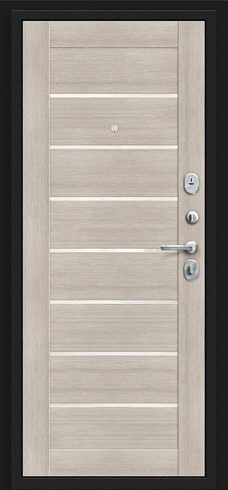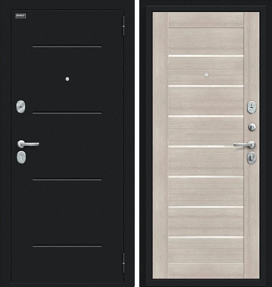 Надежная входная Дверь Браво Техно Букле черное/Cappuccino Veralinga премиум класса по цене 31 181 руб. Большая толщина стали защитит от проникновения в ваш дом, квартиру или коттедж. Используется очень качественная фурнитура: замки, цилиндры, ручки, защелки. Покрытие и отделка двери изготовлено под внимательным контролем производителя. Дверь имеет долгий срок службы и гарантию.