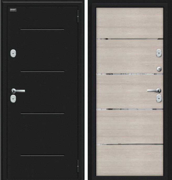 Надежная входная Дверь Браво Thermo Лайн Букле черное/Cappuccino Veralinga премиум класса по цене 47 681 руб. Большая толщина стали защитит от проникновения в ваш дом, квартиру или коттедж. Используется очень качественная фурнитура: замки, цилиндры, ручки, защелки. Покрытие и отделка двери изготовлено под внимательным контролем производителя. Дверь имеет долгий срок службы и гарантию.