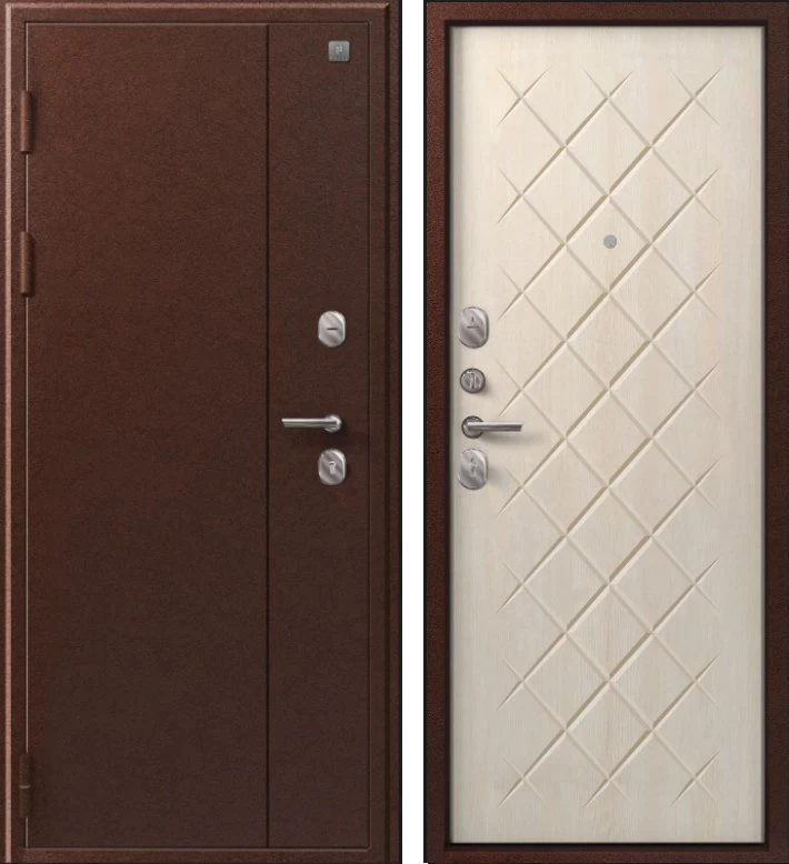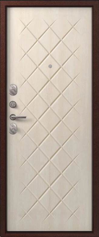 Надежная входная Дверь V-02 медь антик - седой дуб премиум класса по цене 36 681 руб. Большая толщина стали защитит от проникновения в ваш дом, квартиру или коттедж. Используется очень качественная фурнитура: замки, цилиндры, ручки, защелки. Покрытие и отделка двери изготовлено под внимательным контролем производителя. Дверь имеет долгий срок службы и гарантию.