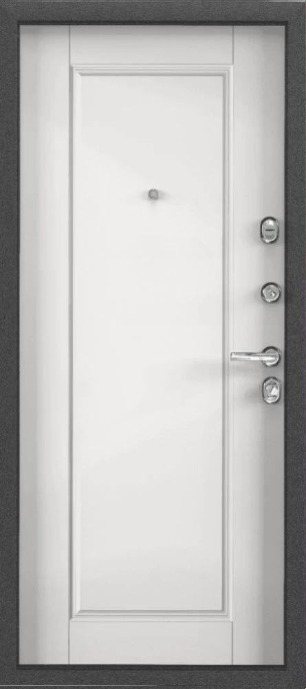 Надежная входная Дверь Цербер 3К Чёрный муар Мистраль Белый Сменная панель премиум класса по цене 42 331 руб. Большая толщина стали защитит от проникновения в ваш дом, квартиру или коттедж. Используется очень качественная фурнитура: замки, цилиндры, ручки, защелки. Покрытие и отделка двери изготовлено под внимательным контролем производителя. Дверь имеет долгий срок службы и гарантию.